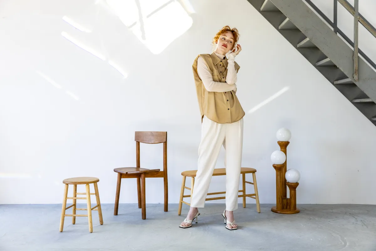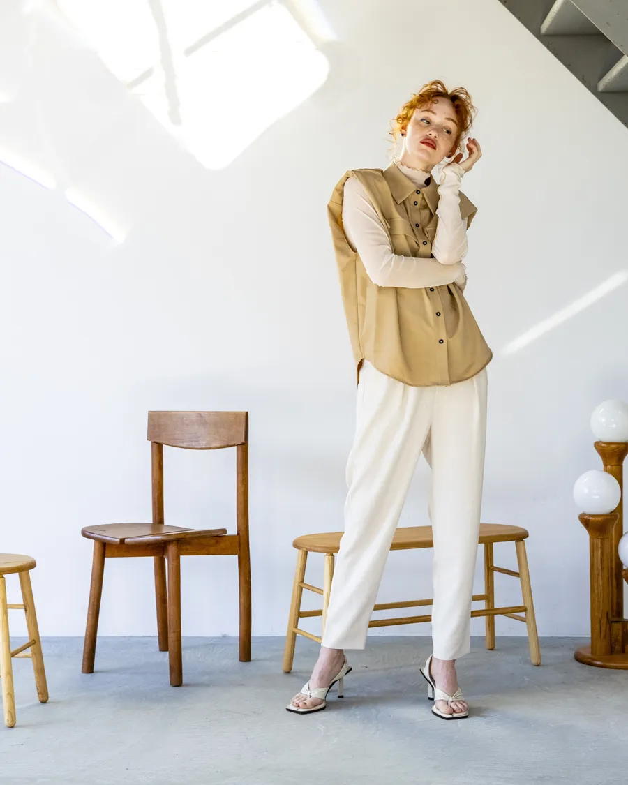 柔軟平滑內襯+腰間單褶剪裁乾淨俐落。