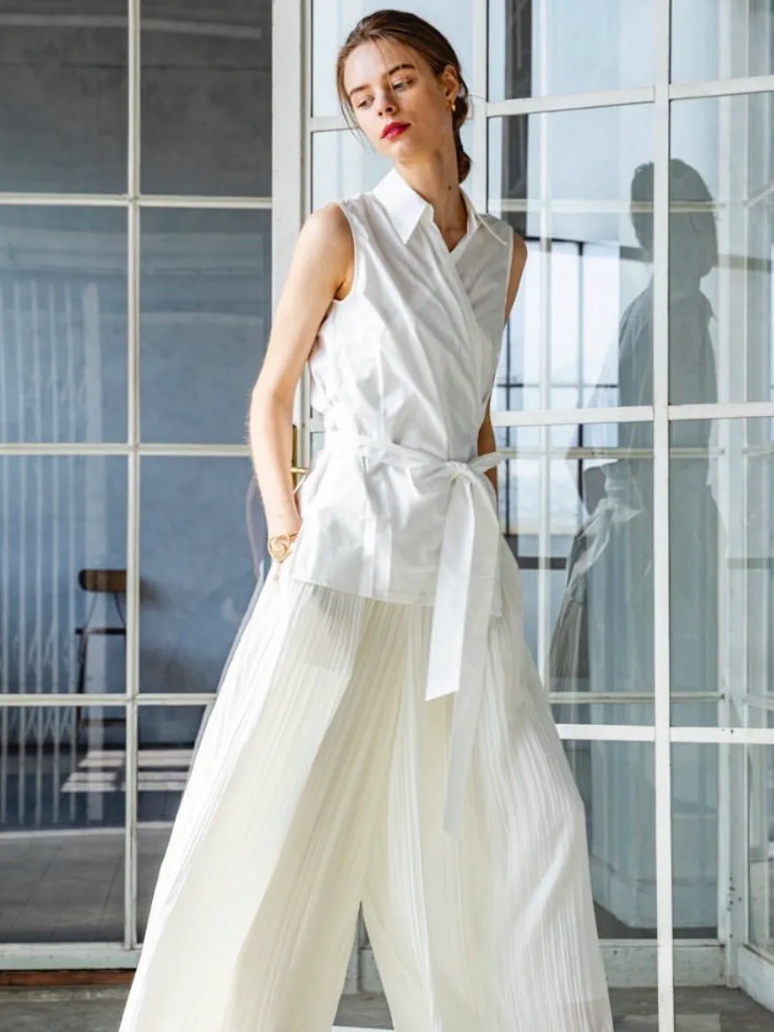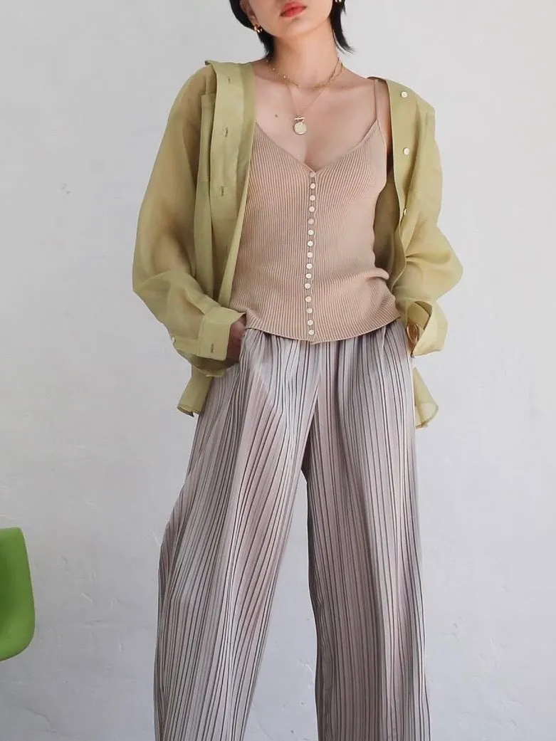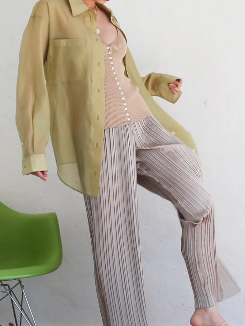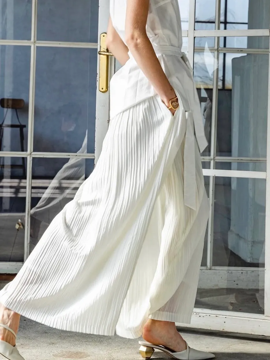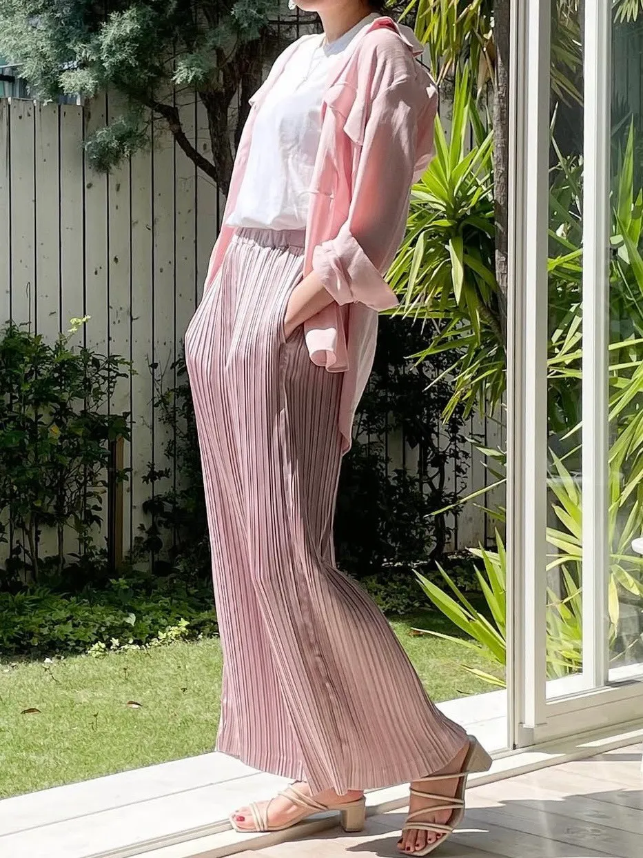 飄逸感緞面百摺長褲