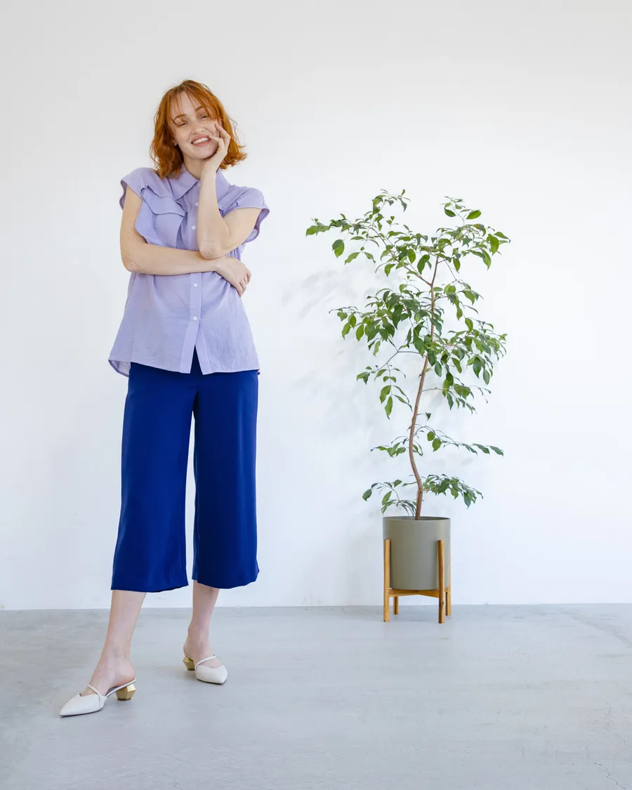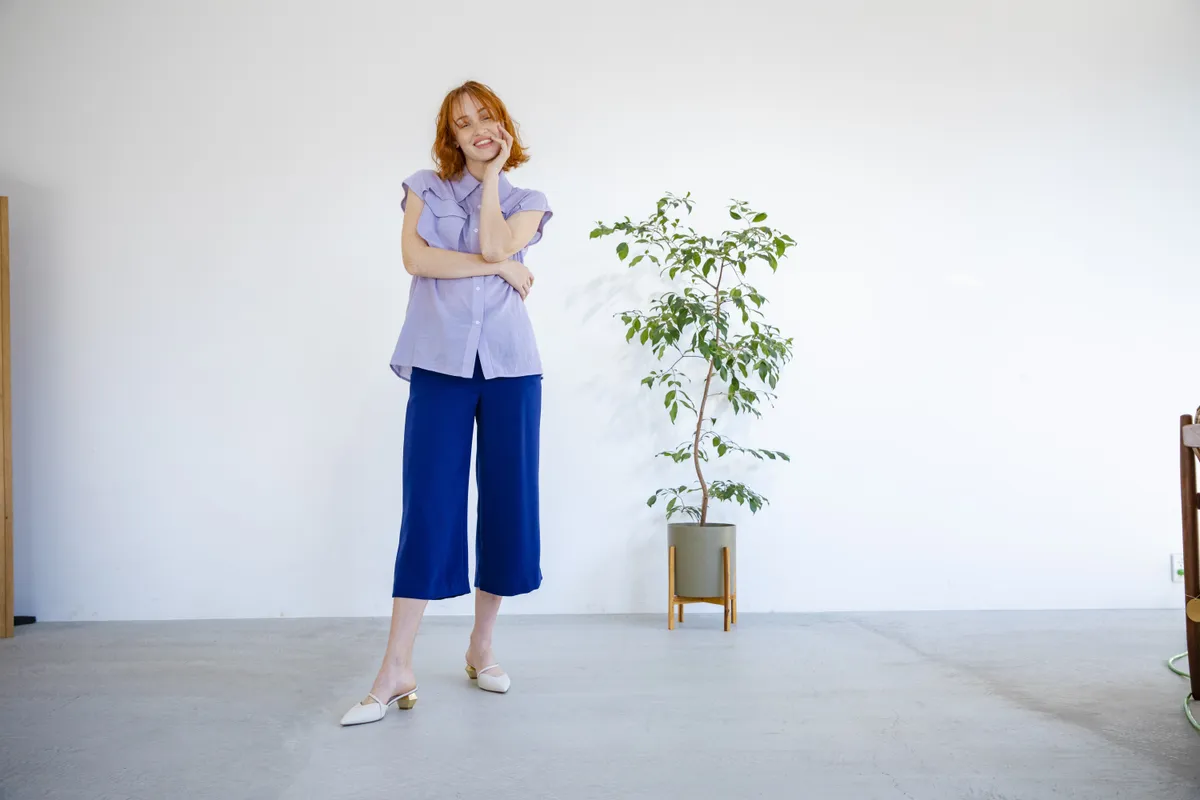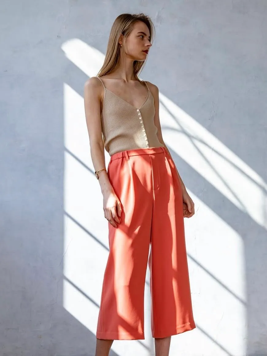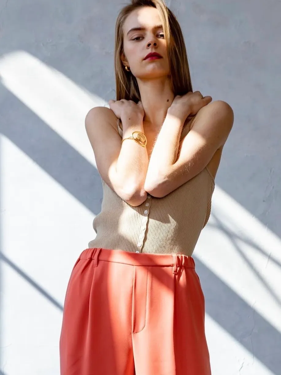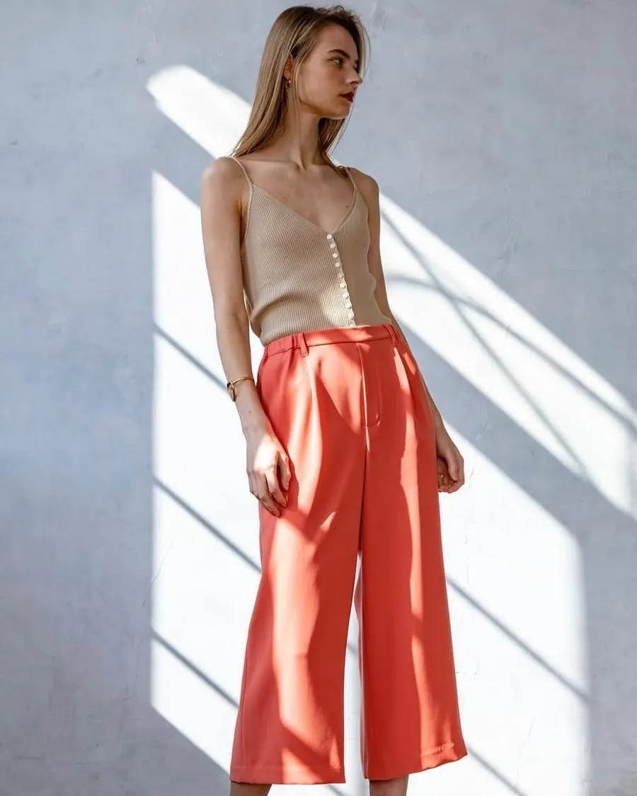 高雅的代表橘粉紅色,就算是露出較多小腿的部分也不失高雅感